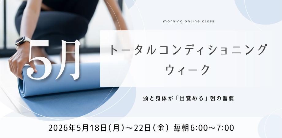 2つのシンプルな動きと呼吸法を組み合わせた「トータルコンディショニング」を毎月5日間、朝6:00~7:00にオンラインで実践します。頭と身体が目覚め、軽さと落ち着きの両方が得られます。